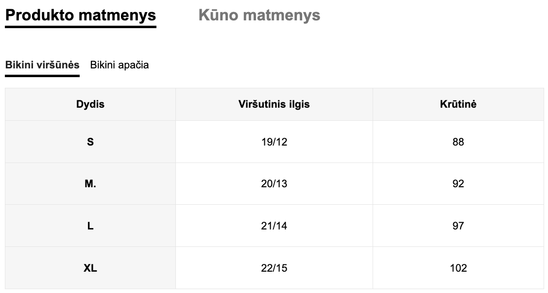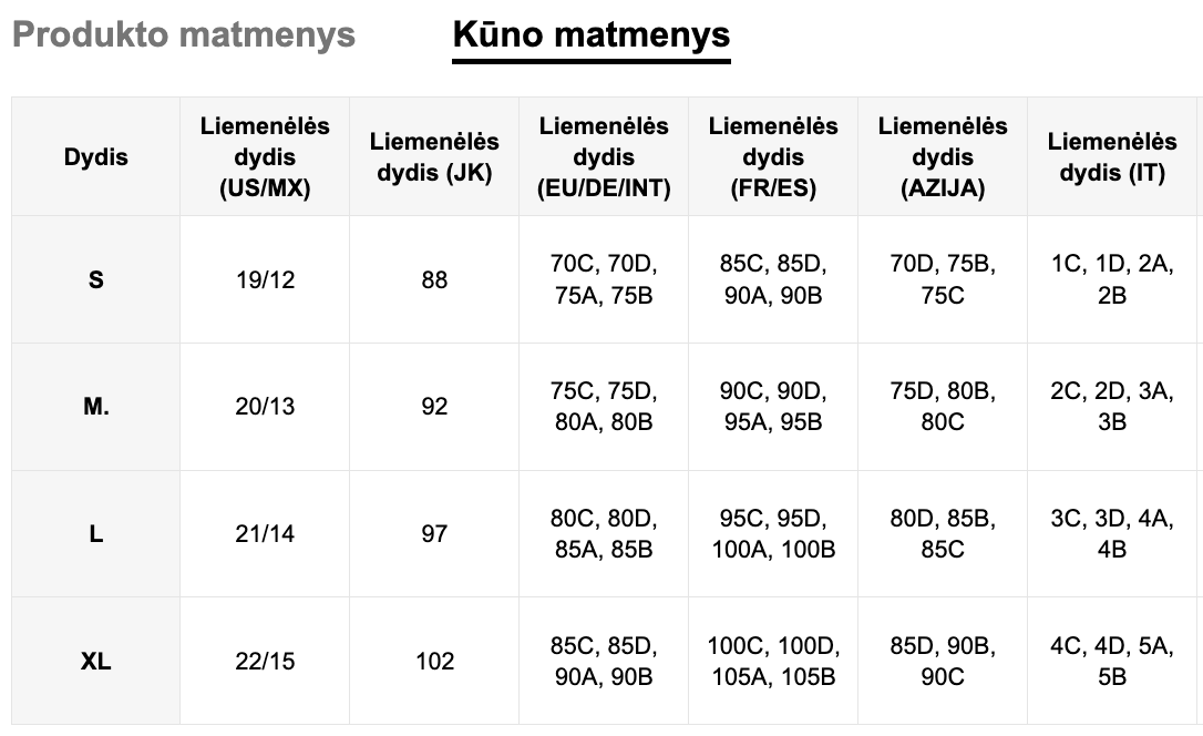 Dydžių lentelę galite rasti paskutinėse kiekvienos prekės nuotraukose.
