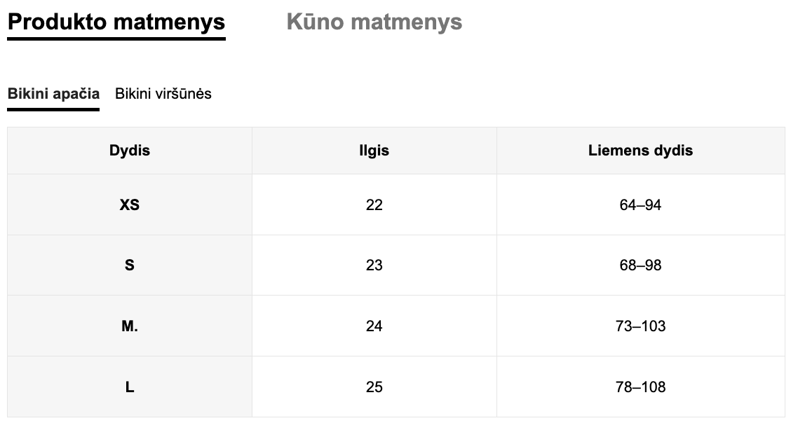 Dydžių lentelę galite rasti paskutinėse kiekvienos prekės nuotraukose.