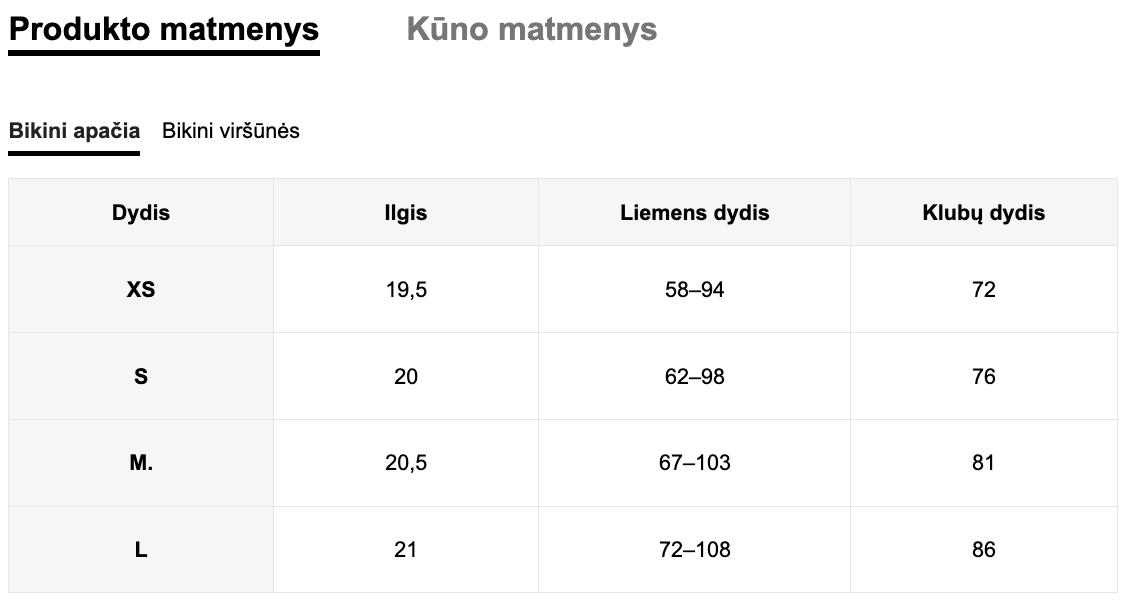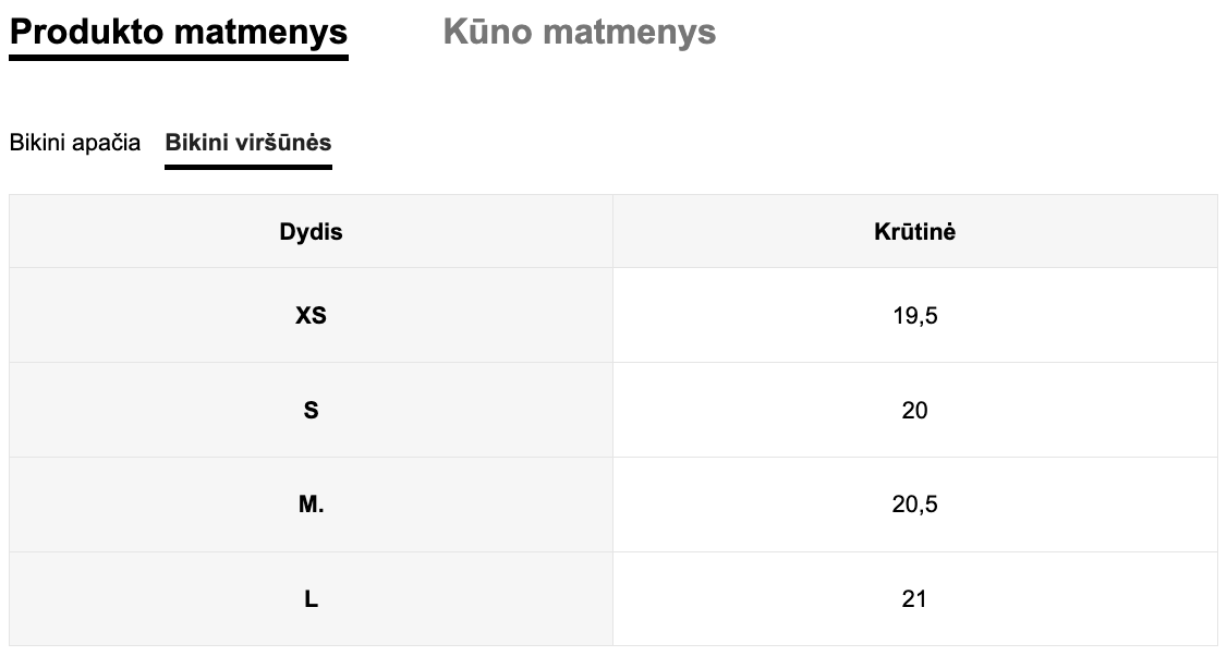 Dydžių lentelę galite rasti paskutinėse kiekvienos prekės nuotraukose.
