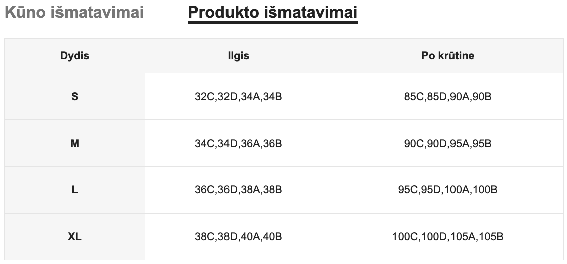 Dydžių lentelę galite rasti paskutinėse kiekvienos prekės nuotraukose.