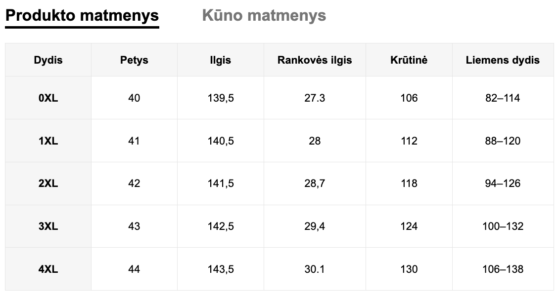 Dydžių lentelę galite rasti paskutinėse kiekvienos prekės nuotraukose.