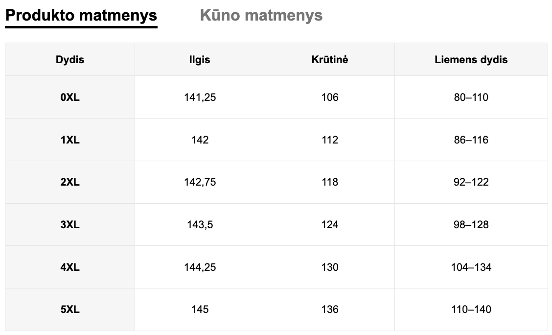 Dydžių lentelę galite rasti paskutinėse kiekvienos prekės nuotraukose.