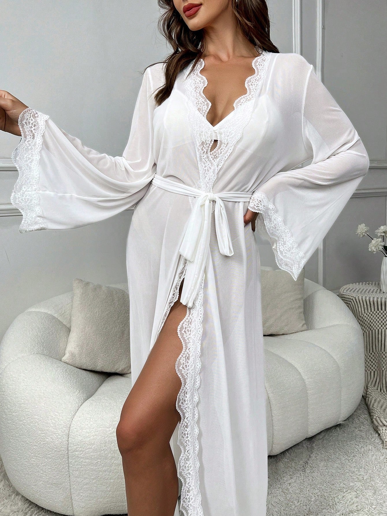 Nuostabus permatomas chalatas, puoštas nėriniais - tobulas pasirinkimas nuotakai! Šia ypatinga proga norisi, kad kiekviena detalė būtų ideali - toks yra šis SilkySet chalatėlis ir kiekviena jo detalė. Kokybiški nėriniai, pasiuvimas jaučiasi ir ant kūno, ir matosi nuotraukose.