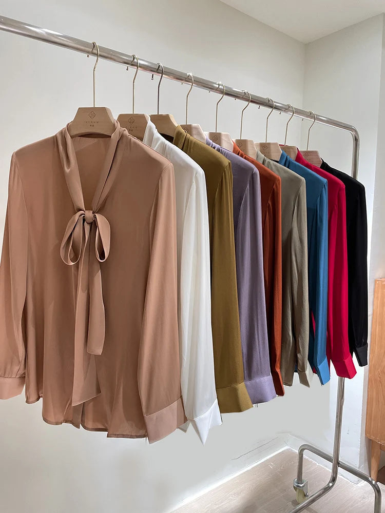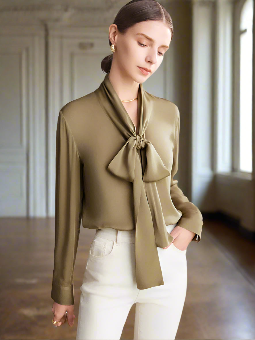Elegantiška ir laiko nepavaldi moteriška palaidinė, pasiūta iš aukštos kokybės 93% Mulberry šilko ir 7% spandekso. 20 momų tankio audinys užtikrina švelnumą, tvirtumą ir prabangų kritimą. Palaidinė dekoruota subtiliu kaspinu ties apykakle – rafinuota detalė, kuri išskiria ją iš kitų.