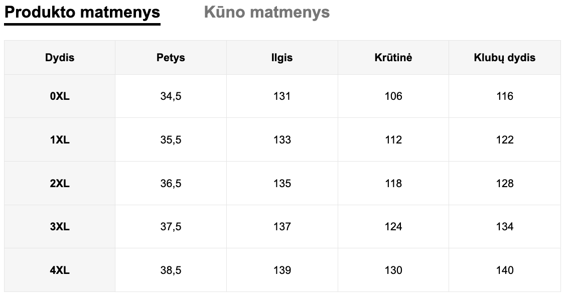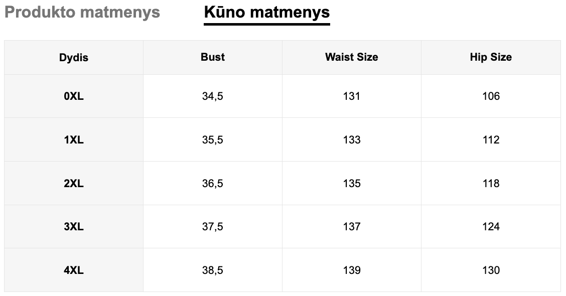 Dydžių lentelę galite rasti paskutinėse kiekvienos prekės nuotraukose.