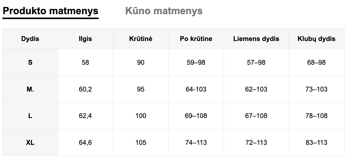 Dydžių lentelę galite rasti paskutinėse kiekvienos prekės nuotraukose.