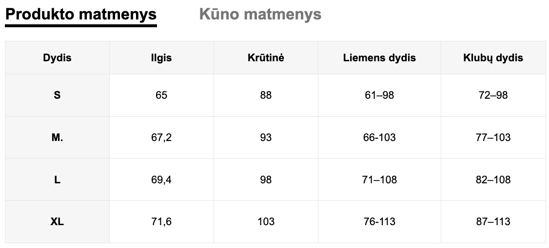 Dydžių lentelę galite rasti paskutinėse kiekvienos prekės nuotraukose.
